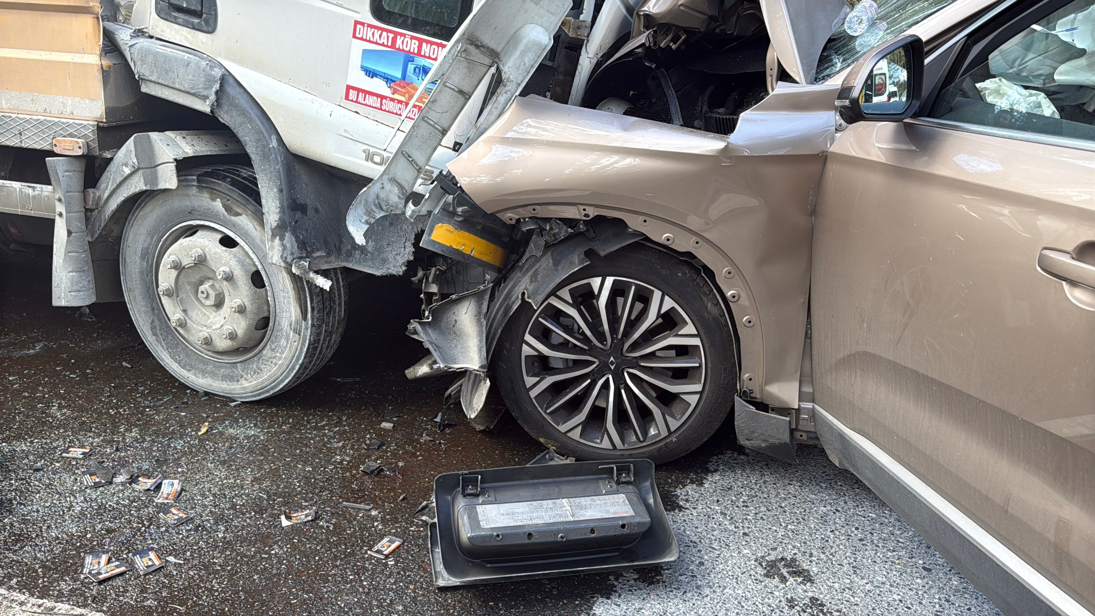Kaza, dün saat 12.45 sıralarında Zekeriyaköy Mahallesi Kilyos Caddesi’nde meydana geldi. Edinilen bilgiye göre, Asuman K.’nin kullandığı cip, henüz belirlenemeyen nedenle karşı yönden gelen beton dökme kamyonuyla çarpıştı. Çarpmanın etkisiyle kamyon sürücüsü Yasin Ç., yan koltuktaki Ali Osman U. ve cip sürücüsü Asuman K. yaralandı.